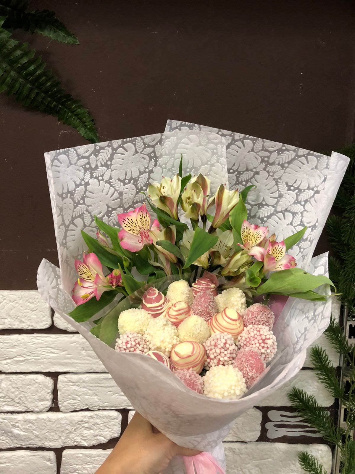 | Состав: | Альстромерии, Пионы, Фрезии |